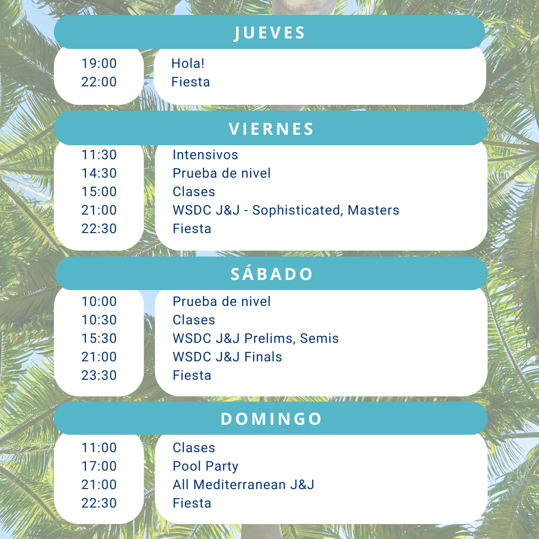 Durante todo el fin de semana vamos a disfrutar del mejor West Coast Swing, con sociales que se alargan hasta el amanecer, talleres llenos de ritmo y una energía que solo el Mediterráneo sabe dar.